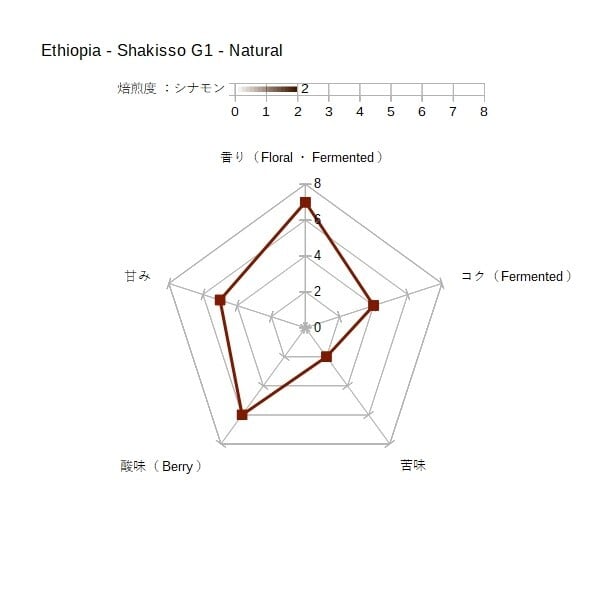 そのフローラルな強い香りとフルーティーで明るい甘みや酸味を楽しんで頂けるように、当店のラインナップの中では最も浅めの焙煎で仕上げています。